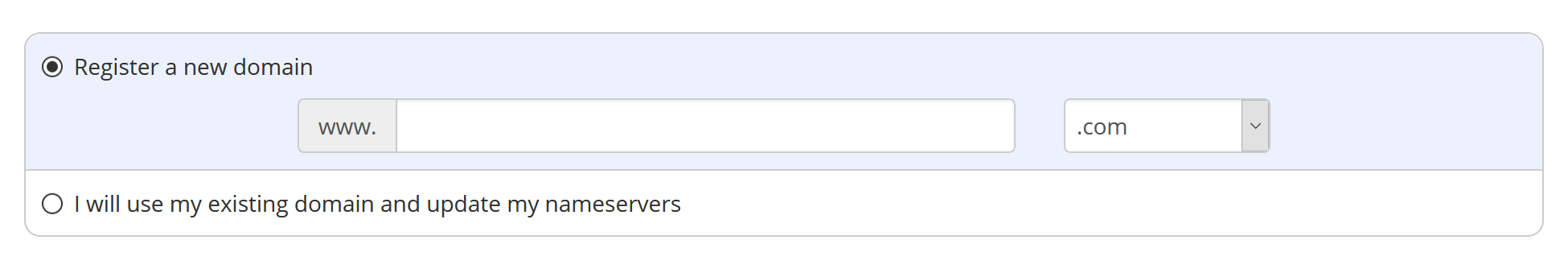 (1) Register a new domain. (2) Use an existing domain and update the nameservers. (see photo below)