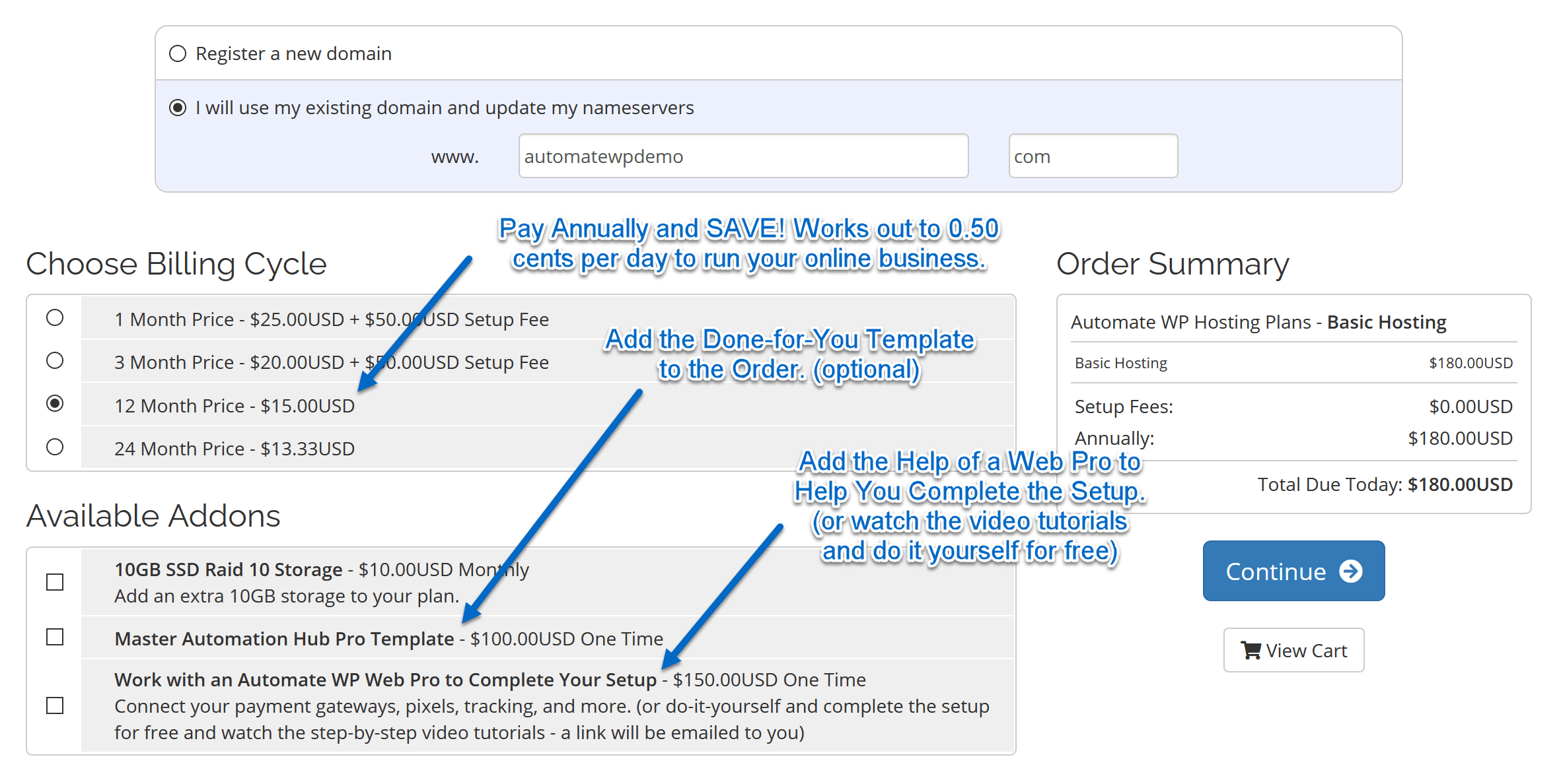 If you are starting with the done-for-you website, check the box and add it to your order.